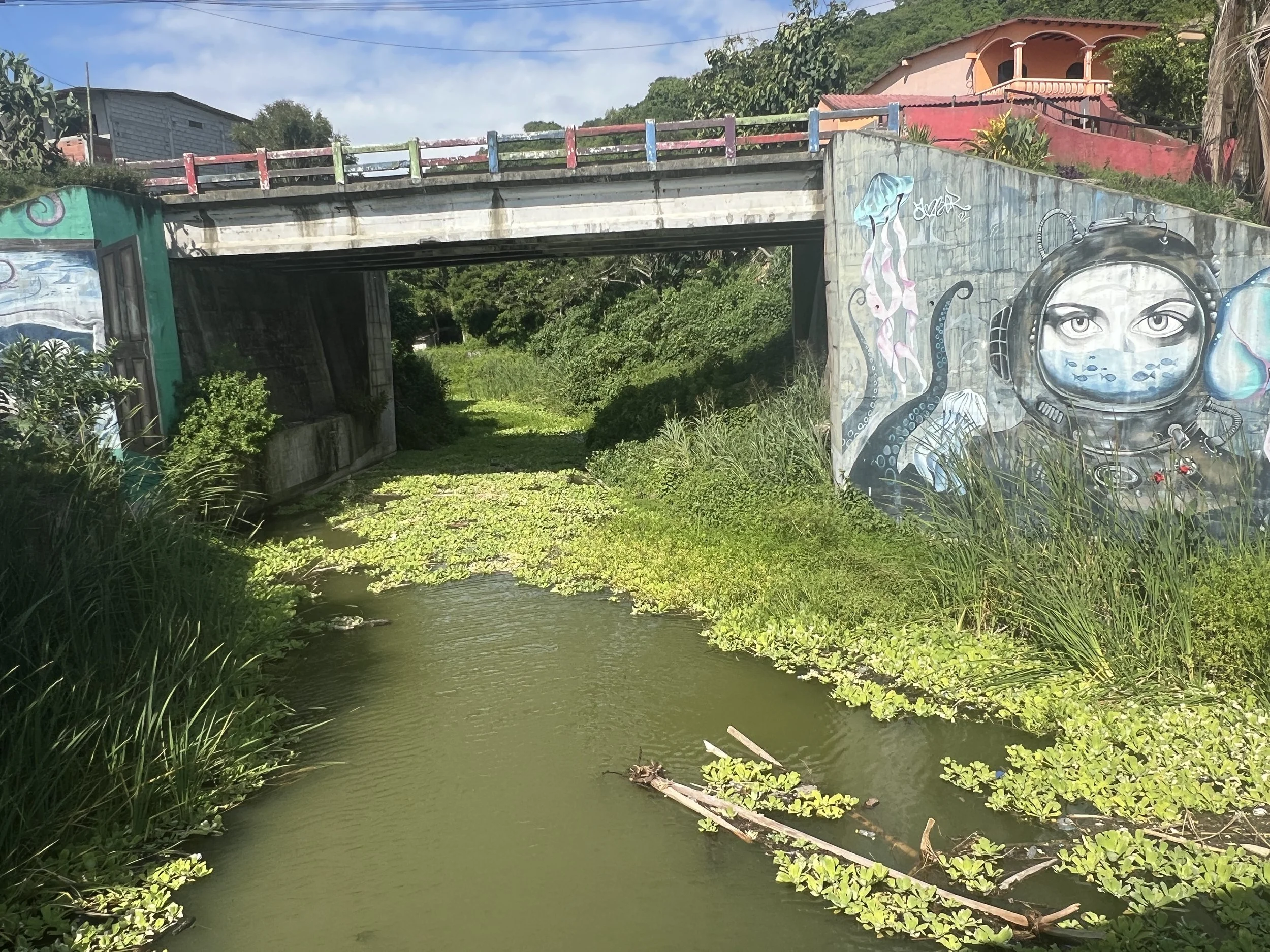 In Montañita, higher tourism density and limited centralized sewer infrastructure create a more chronic water quality problem. Long standing concerns around wastewater, storm drainage, and solid waste near estuaries and coastal outlets point to conditions where contamination can persist throughout the rainy season, and in some areas even during dry periods. In this setting, baseline water quality may remain compromised, particularly near outfalls and estuarine channels, reflecting infrastructure that has not kept pace with growth.